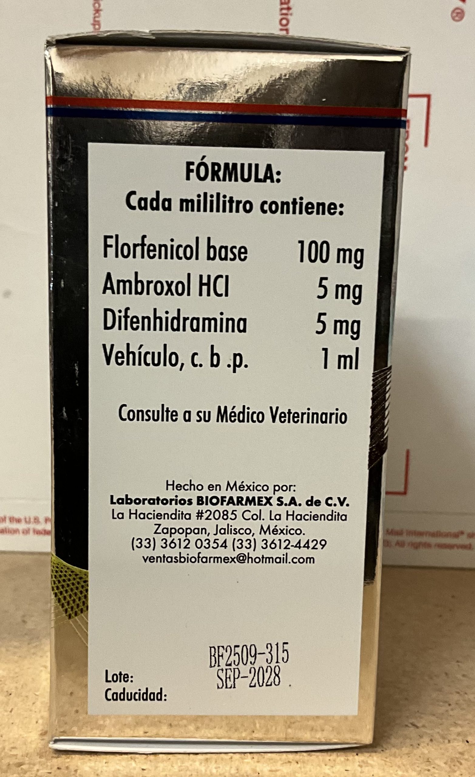 Combinación sinérgica de antibióticos para potenciar el amplio espectro contra bacterias gran positivas y gran negativas, con antiinflamatorio esteroidal, antihistamínico antialérgico, mucolítico expectorante y expectorante natural que alivia la tos seca no productiva, en solución.