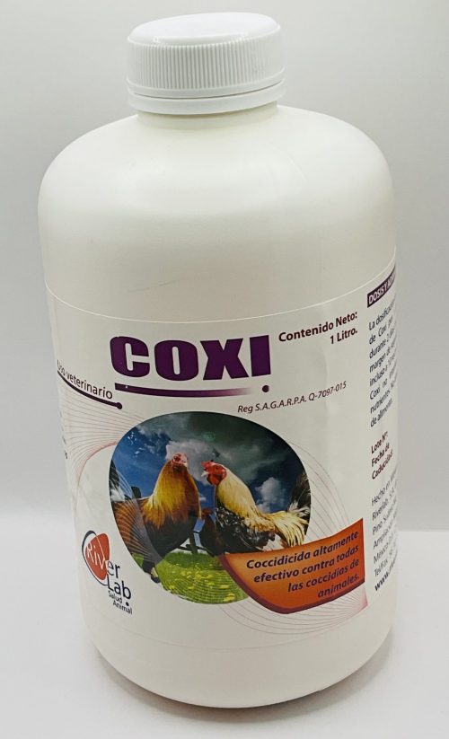 Dosis y vía de administración: La dosificación en aves corresponde a 1 ml de coxi por 1 litro de agua de bebida durante 2 días seguidos. Coxi tiene un alto margen de seguridad, siendo bien tolerado incluso a 10 veces la dosis recomendada. Coxi no interfiere con la absorción de nutrientes. No altera el consumo de agua ni de Alimento.