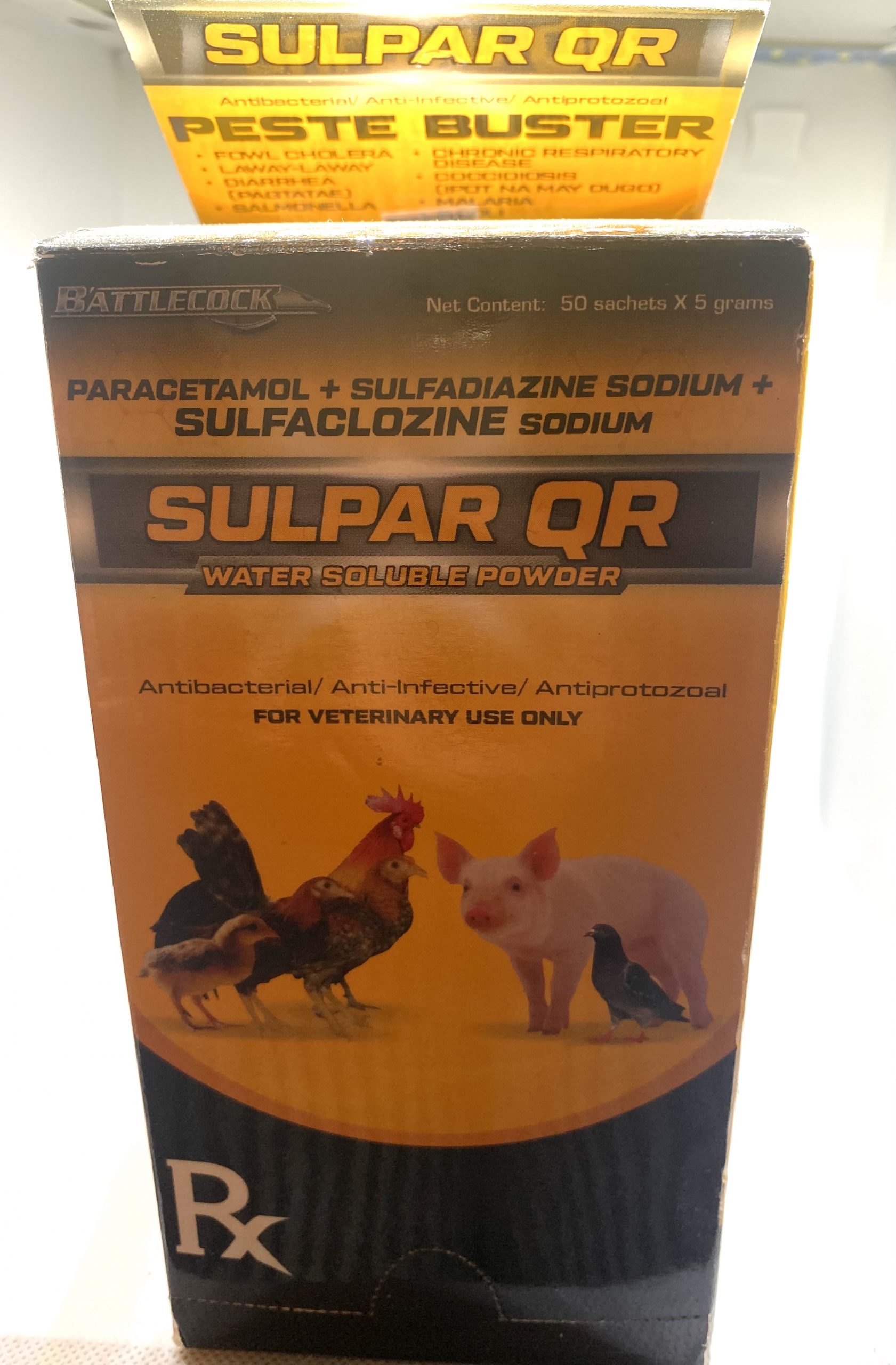 and Administration: Mix 1 sachet (5g) of SULPAR QR into 1 gallon (4L) of water and administer for 3 consecutive days.On the 4th day, just give plain water. Repeat administration of SULPAR QR on the 5th day to 6th day.