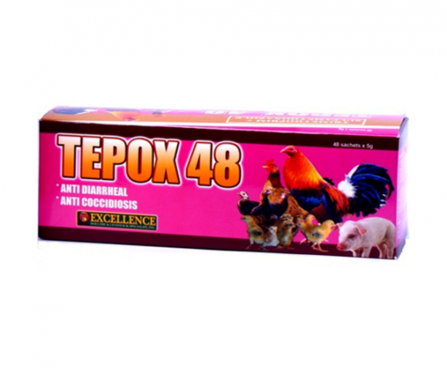 Tepox 48 contains the potent combination of Trimetophrim and Sulfamethoxazole and is indicated for digestive diseases of poultry.