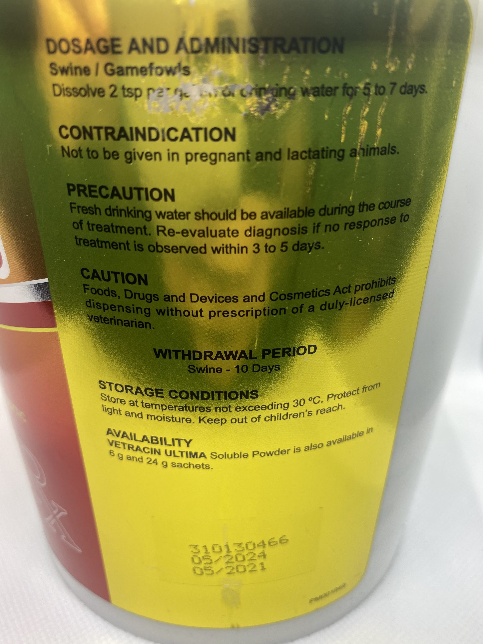 Swine: Glasser’s disease, respiratory infections (bronchitis, rhinitis), including pneumonia caused by Mycoplasma and Pasteurella spp., gastrointestinal tract infections like swine dysentery, ileitis (Porcine Proliferative Enteropathy), infectious arthritis caused by Mycoplasma hyosynoviae and Erysepelas. Gamefowl: treatment of chronic respiratory disease complex (CRD), infectious coryza, fowl cholera, and prevention of post-vaccination reactions.