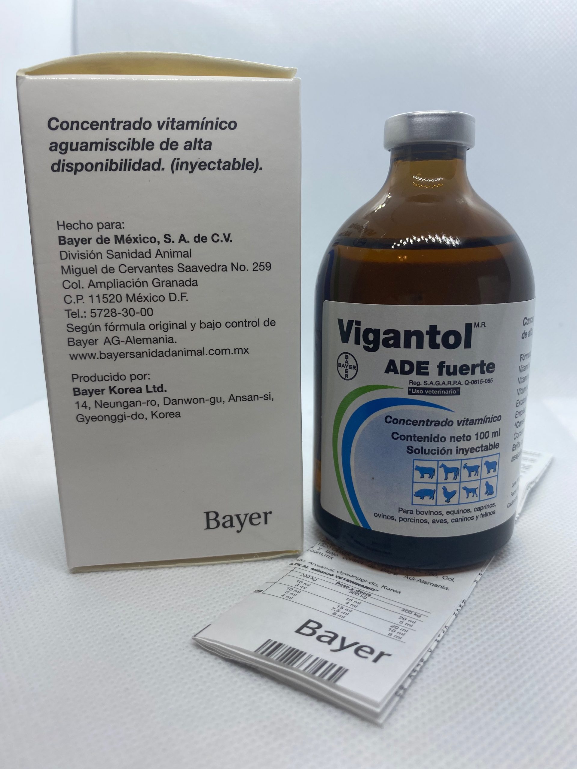 Vigantol ADE fuerte , contiene al grupo de vitaminas liposolubles A, D y E, en una formulación especial que le permite una rápida absorción y disponibilidad a partir del sitio de aplicación; por otra parte, esta ventaja le permite administrarse en el agua, y es altamente recomendable para la terapia de deficiencia de estas vitaminas