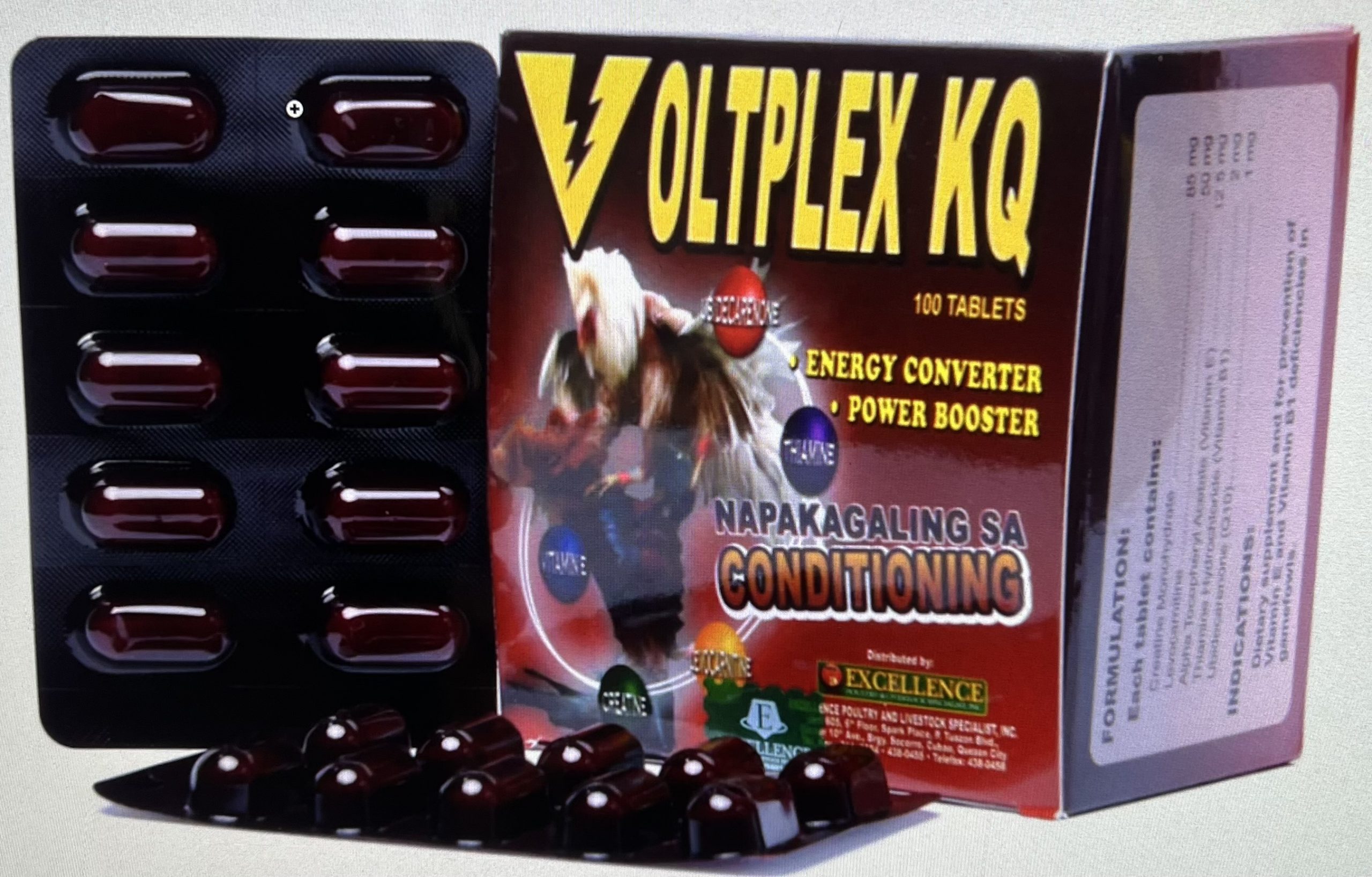 Gamefowl: 1 tablet of VOLTPLEX KQ after feeding (morning & afternoon) on the last 2 days of conditioning and 1 tablet after morning feed day.